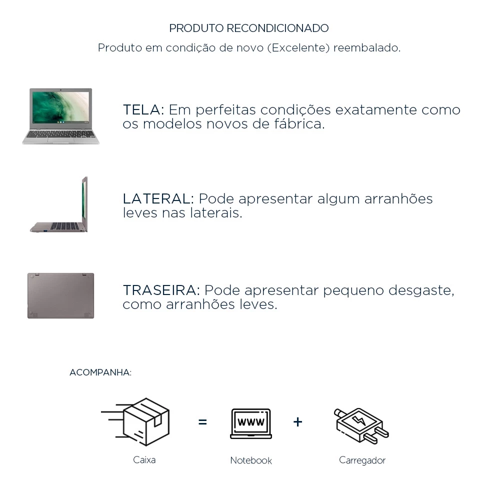 – Nos garantimos que o aparelho que você recebe está em ótimo estado de conservação de funcionamento perfeitamente, podem apresentar alguns arranhões leves na carcaça, porem quase imperceptível.
